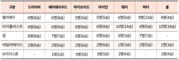 - 캘러웨이 주도 속 타이틀리스트 · 핑 추격…2025시즌 KLPGA 투어 선수들은 어떤 클럽 사용했나